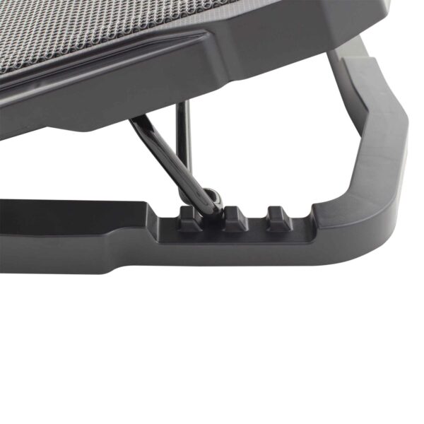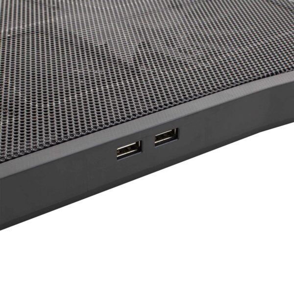 Unleash the power with a 1500 RPM fan that whispers at 21 dB. Stay connected with the USB hub. Made of sturdy ABS and PC plastic with metal mesh, weighs 867 g. Two 125 mm and 70 mm fans combine performance with style. With 5 adjustable angles and a sleek black design, you can combat heat in style. Take your laptops to the next level!