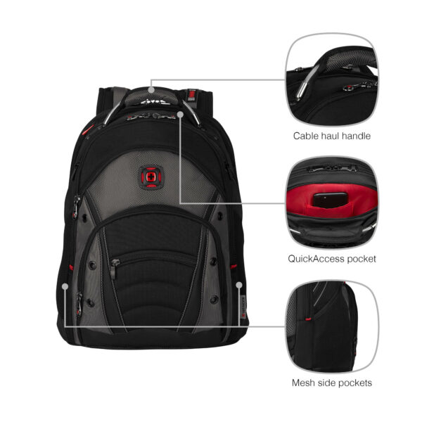 For quick access, there’s a quick-access pocket, and the side pockets are large enough to hold a water bottle or umbrella. Thanks to the stabilising base, the bag stands firmly, and the shock-absorbing shoulder straps and cable handle ensure comfort throughout the day.