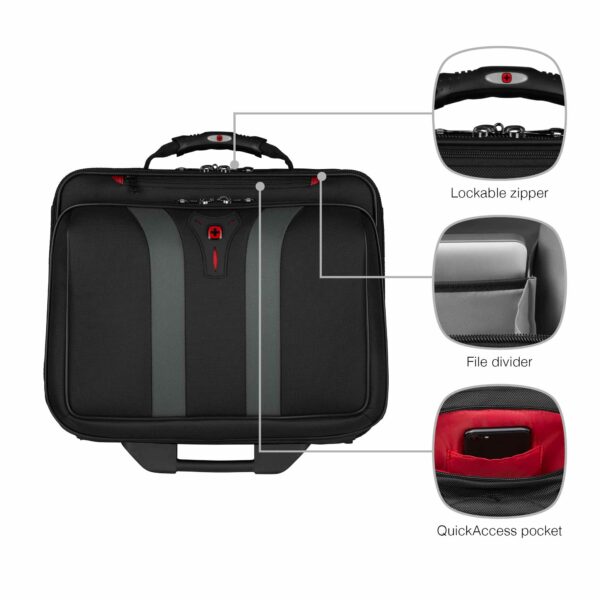 Spacious compartments store clothes and protect your laptop, while the storage compartment for essentials and document divider keep everyday items organised.
