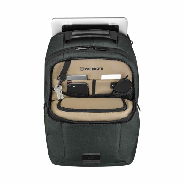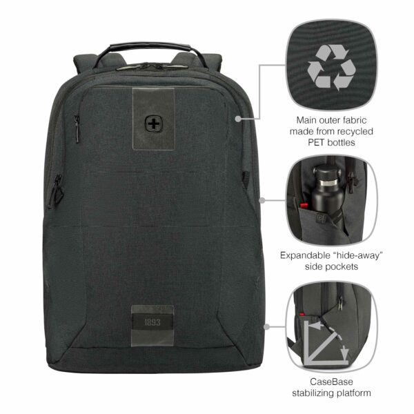 The main outer material is made from recycled PET bottles. This backpack is mobile, flexible and packed with progressive storage solutions, leaving the competition far behind.