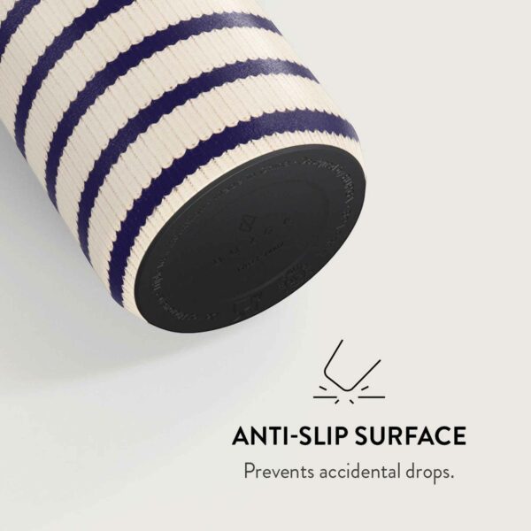 Soft rubber grip on the lid and non-slip rubber pad on the bottom for stability.