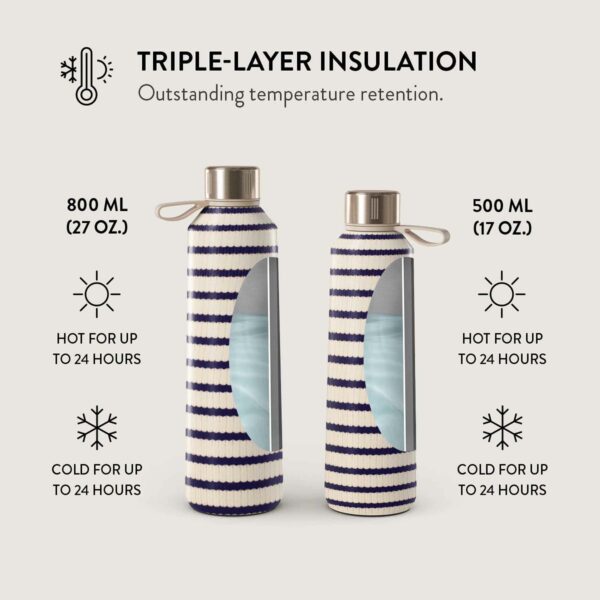 500 ml water bottle: Keeps drinks hot for up to 24 hours and cold for up to 24 hours.