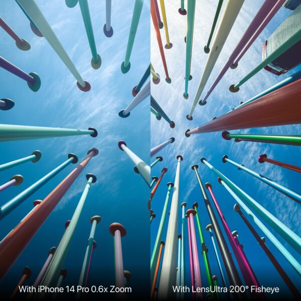 In summary, the 200° Fisheye lens offers a unique opportunity to capture creative and expansive images directly from your smartphone. That’s why it’s the perfect choice for photographers who want to experiment with a surreal and engaging perspective.