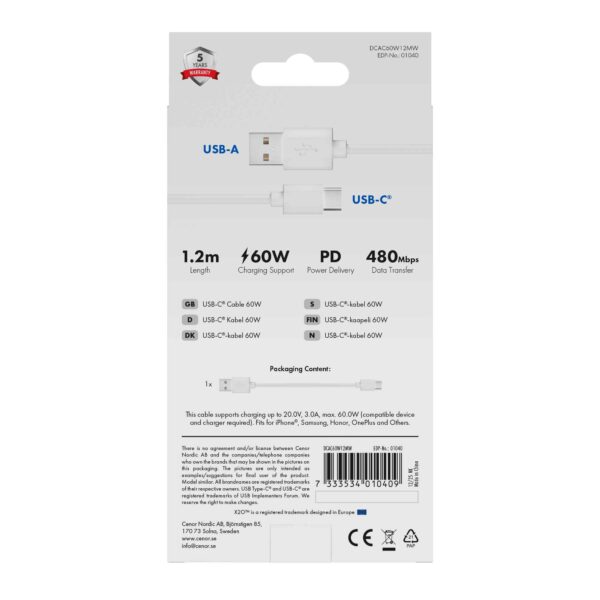 The X2O Premium Basic series offers the highest quality and advanced specifications for everyday use. It is available in two models: USB-A to C and USB-C to C, and in three different lengths: 0.5 m – 1.2 m – 2.0 m.