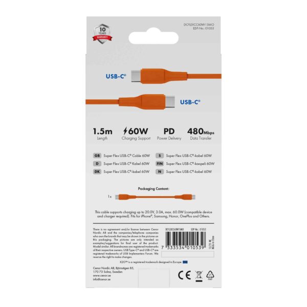 X2O Soft-Touch Silicone Series is a tangle-resistant USB-C to C cable with a soft silicone jacket. The cables offer USB 2.0 standard and, thanks to their durable wire construction, moulded casings and nickel-plated connectors, the result is a durable and easy-to-handle cable.