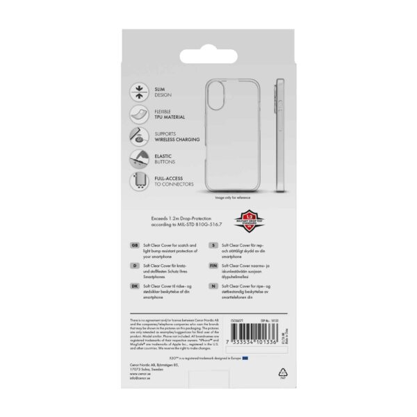 Fully transparent, thin and extremely flexible case that protects against light impacts and scratches. Drop tested up to 1.2 m in accordance with MIL-STD810G-516.7.