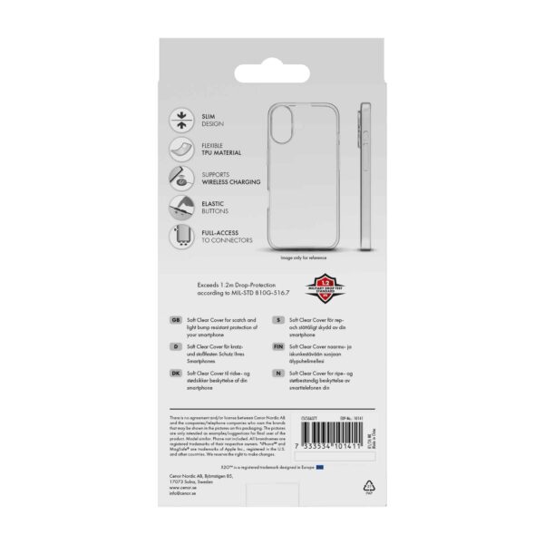 Fully transparent, thin and extremely flexible case that protects against light impacts and scratches. Drop tested up to 1.2 m in accordance with MIL-STD810G-516.7.