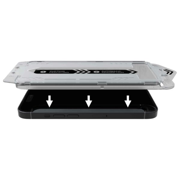 The screen protector is made of 0.33 mm reinforced 9H glass and covers the entire screen, including the rounded edges. The included mounting frame ensures quick and precise installation without dust or bubbles.