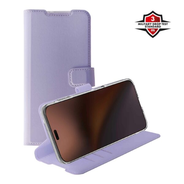 This protective case has three credit card slots and a stand function for optimal use in landscape mode. It protects your device against shocks, scratches and drops up to 3 meters in accordance with MIL-STD810H-516.8. The elegant PU leather material has a high-quality feel and look. The perfect fit ensures that all ports and connections are fully accessible.