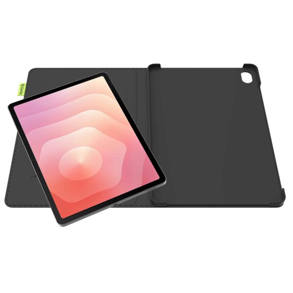 The case can be easily placed in three different positions. This means you always have the right angle for comfortable video calls, scrolling or watching series. The smart design makes all buttons, ports and the camera easily accessible.