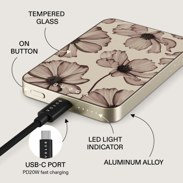 Meet the perfect blend of fashion and function. This sleek 5000 mAh power pack keeps your devices charged and adds a touch of style with BURGA’s unique, fade-proof design. It’s more than just a power bank; it’s a statement piece that powers your devices anytime, anywhere.