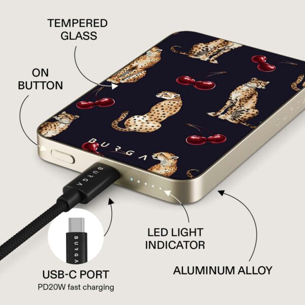 Meet the perfect blend of fashion and function. This sleek 5000 mAh power pack keeps your devices charged and adds a touch of style with BURGA’s unique, fade-proof design. It’s more than just a power bank; it’s a statement piece that powers your devices anytime, anywhere.