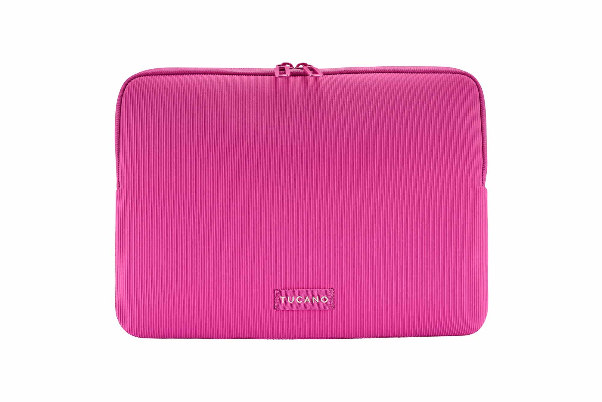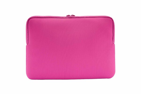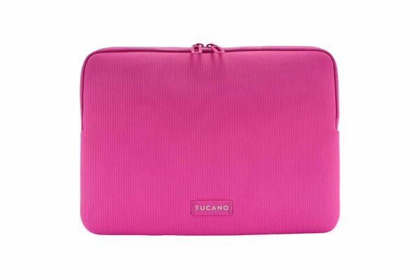 Neoprene sleeve with striped pattern, designed for laptops and MacBooks. The 4 mm thick structure guarantees excellent protection while maintaining an ultra-thin profile thanks to the flatlock seams. Equipped with Anti-Slip System®, an elastic insert that prevents scratches and slipping. The inner protective edge provides extra protection, while the double-pull zip makes it easy to open. The logo, printed on a centre-sewn label, adds a distinctive design and personality. Made partly from recycled plastic.