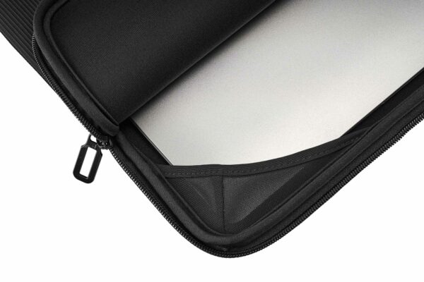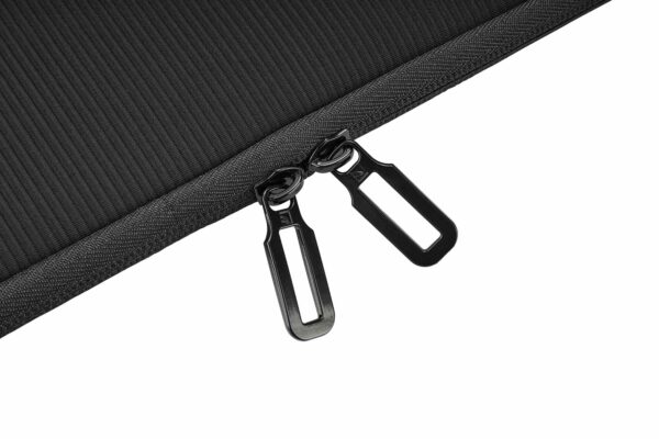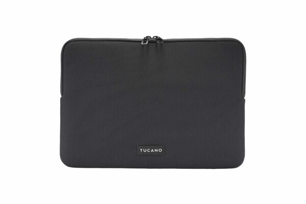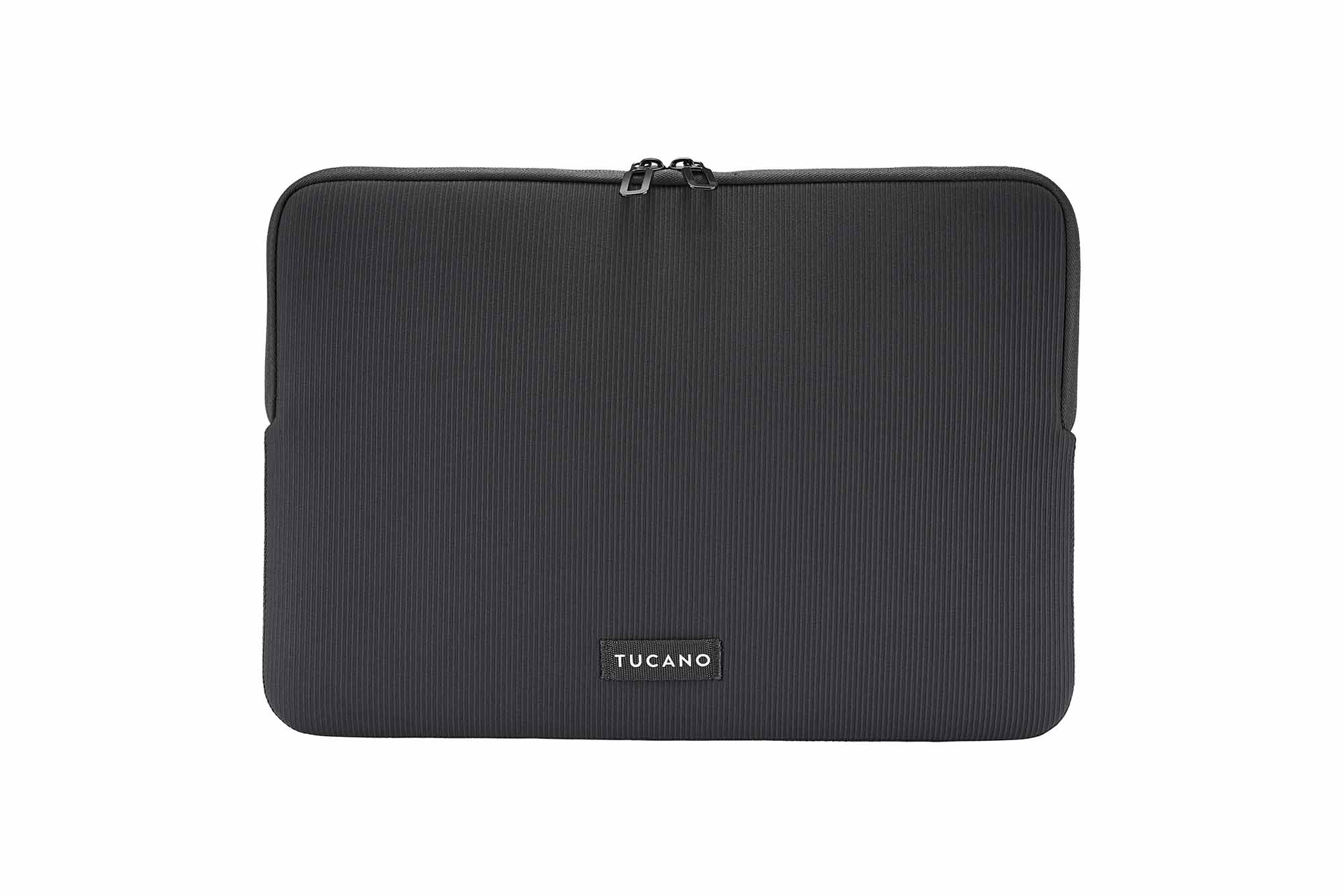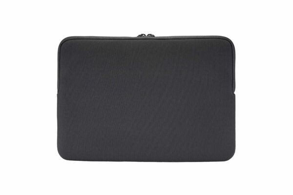 Neoprene sleeve with striped pattern, designed for laptops and MacBooks. The 4 mm thick structure guarantees excellent protection while maintaining an ultra-thin profile thanks to the flatlock seams. Equipped with Anti-Slip System®, an elastic insert that prevents scratches and slipping. The inner protective edge provides extra protection, while the double-pull zip makes it easy to open. The logo, printed on a centre-sewn label, adds a distinctive design and personality. Made partly from recycled plastic.