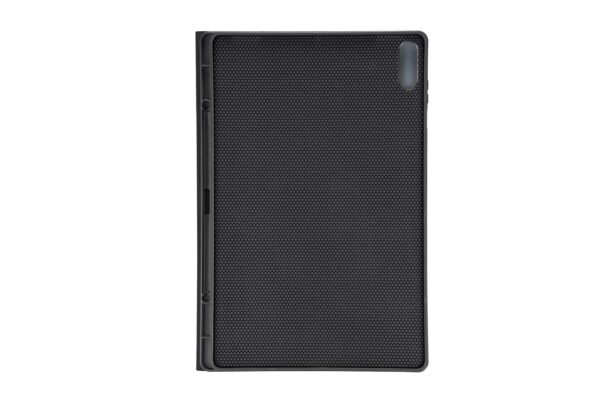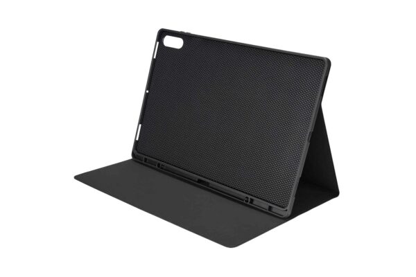 Eco-friendly case for Samsung Galaxy Tab, made from nylon-like PU, manufactured from recycled plastic. The inside is lined with a soft, scratch-resistant material and the inner back shell, which has an opening for the camera, is made from soft, protective TPU. The front cover can also be transformed into a practical stand, perfect for typing and reading. There is an external compartment for the S Pen. Three 500 ml plastic bottles have been recycled to make this case.