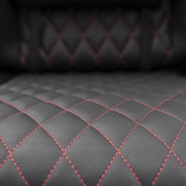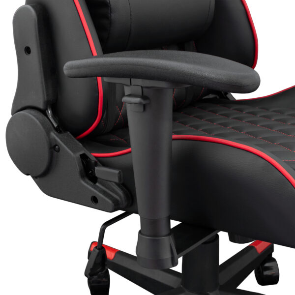 With 2D armrests, 180° recline and head/back cushions, it is designed for ultimate comfort. The sleek black and red PU cover adds style, while the sturdy metal frame ensures durability.