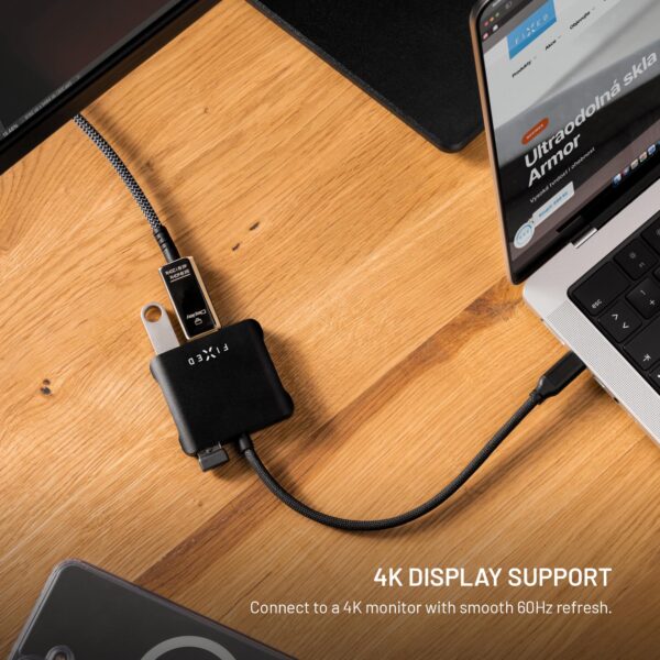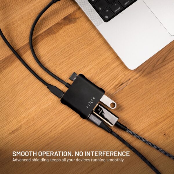 The FIXED Quadri multiport hub seamlessly combines video, power, and high-speed data transfer in a compact and user-friendly solution. This makes it an ideal choice for MacBook users and others who use powerful laptops and want to expand their connectivity options without compromising on performance.