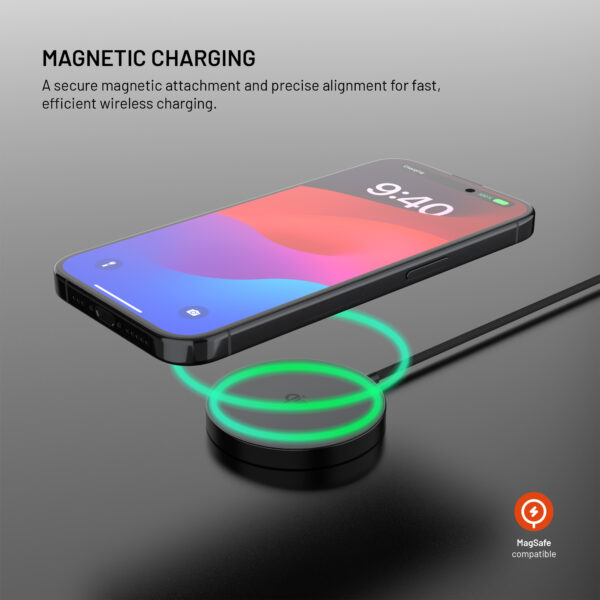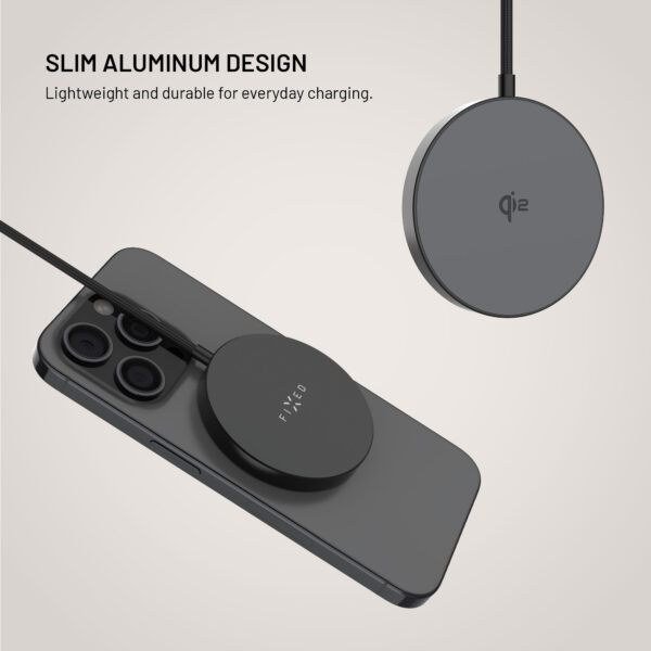 The elegant FIXED MagPad Slim wireless charger features certified Qi2 technology and MagSafe support. This guarantees fast and efficient charging of your phone with up to 15 W of power.
