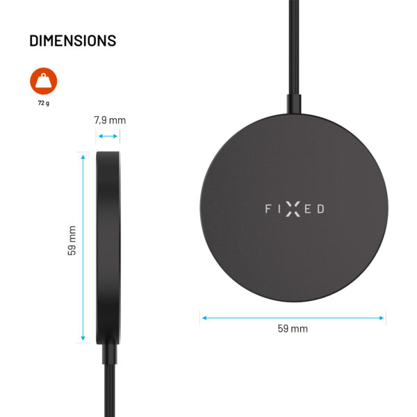 The charger includes a 1.5 m long USB-C cable with a durable textile braid, which guarantees a long service life. FIXED MagPad Slim charges your phone’s battery quickly and reliably, whether you’re at home, in the office or on the go.