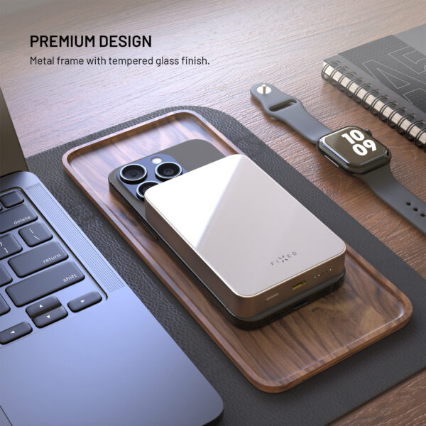 The power bank’s casing is made from a stylish yet durable combination of metal frame and tempered glass with a matte finish on the charging surface to protect your phone from scratches. The FIXED MagZen 10 Crystal is a stylish and powerful solution for anyone who wants to have enough power at hand at all times.