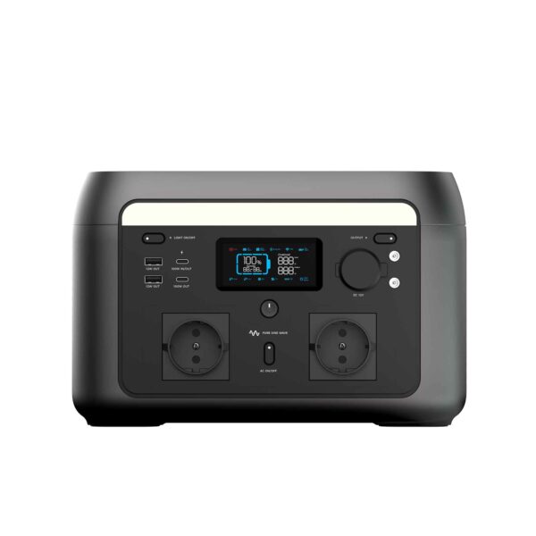 The intelligent display shows exactly how much energy the 600W Power Station has left. It shows the battery percentage, output power to connected devices and how long it takes to charge. You also receive notifications about excessive or insufficient temperatures and the fan status. A complete overview of these can be found in the manual.