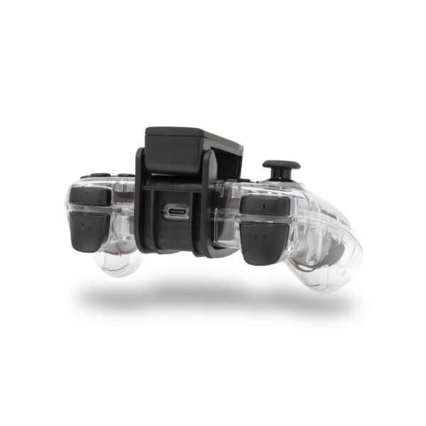 The 800 mAh Li-polymer battery guarantees 5–10 hours of epic gaming. This transparent gamepad weighs 220 g. LEGION adapts to everything from Android to iOS (MFI), N-Switch to Windows (wired) and PS4/PS3.