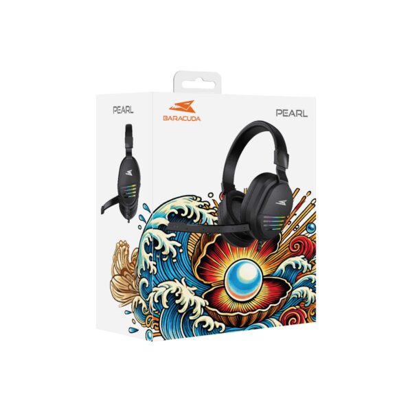 Enhance your gaming experience with the Baracuda Pearl gaming headset. This stereo 2.0 headset delivers crystal-clear sound in the 20–20,000 Hz frequency range. The comfortable design, with a mute button and volume control on the ear cups, ensures hours of gaming without fatigue. The black ABS plastic construction and rainbow-coloured LED lighting combine durability with style.