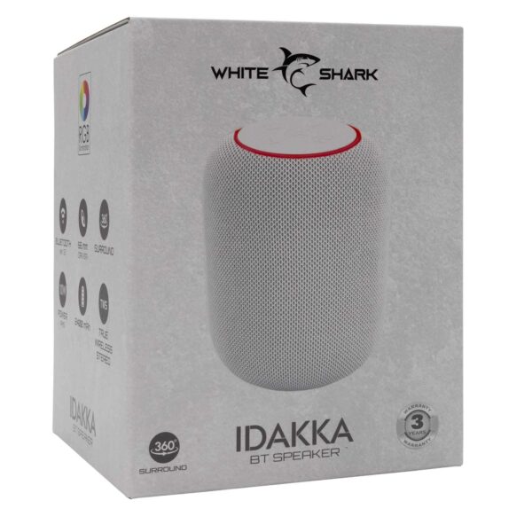 Experience immersive sound with the White Shark IDAKKA Bluetooth speaker. With a wide frequency range and powerful 2x5W RMS output, you can enjoy rich sound. The elegant design, complete with lighting, adds style to any environment. Portable with a 2400 mAh battery for up to 4 hours of music playback.