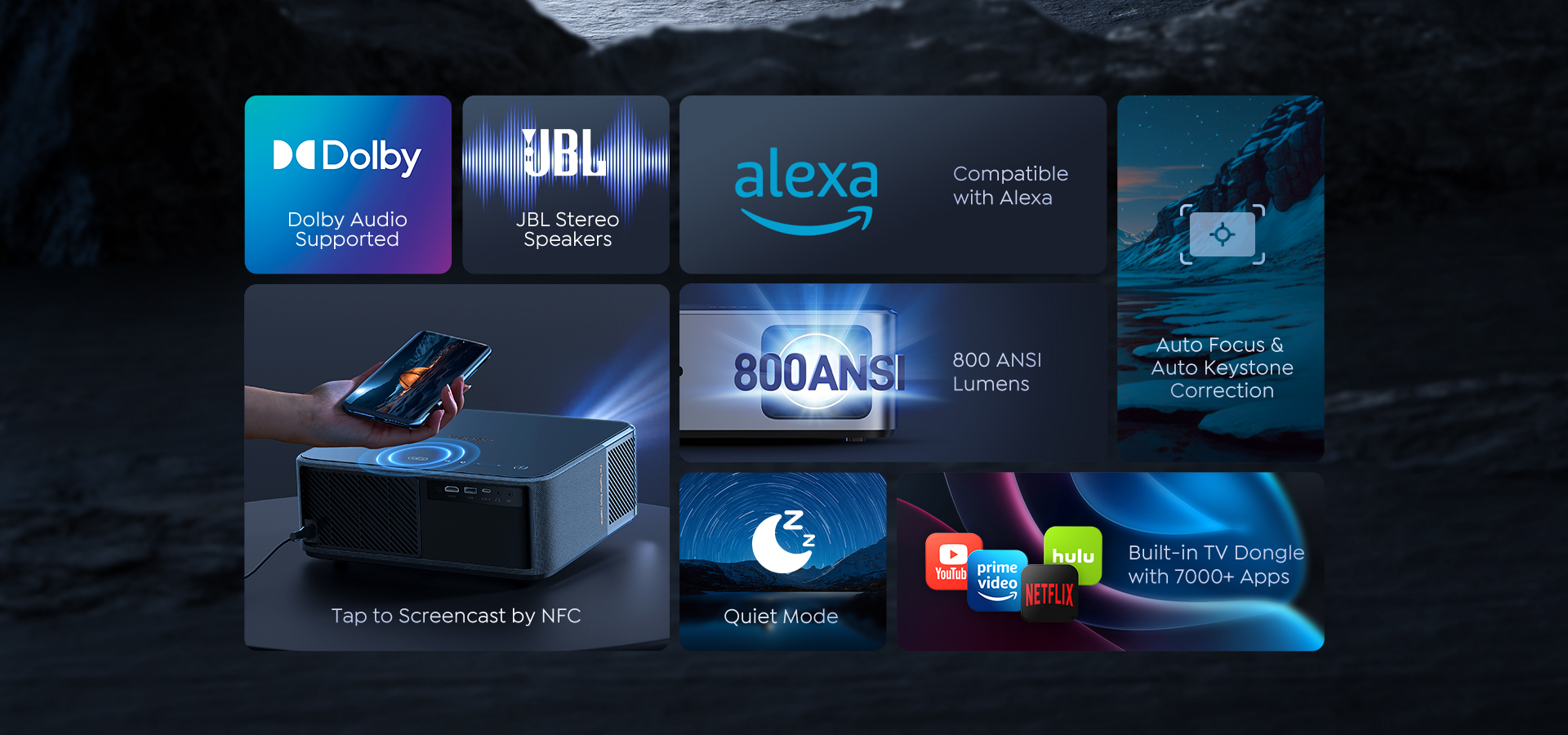 K2's smart projector offers seamless connectivity and convenience, allowing users to instantly share their content from their NFC-enabled device with just a simple tap, making it the ultimate solution for hassle-free and quick presentations or impromptu movie nights.