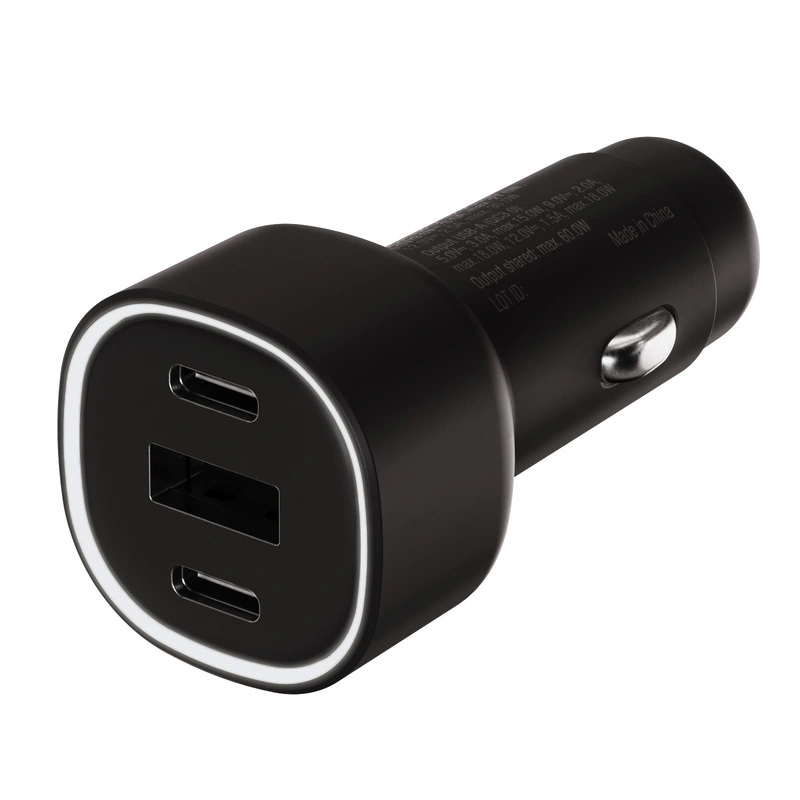 Super Fast 60W Car Charger 2xUSB-C 30W/1xUSB-A 18W