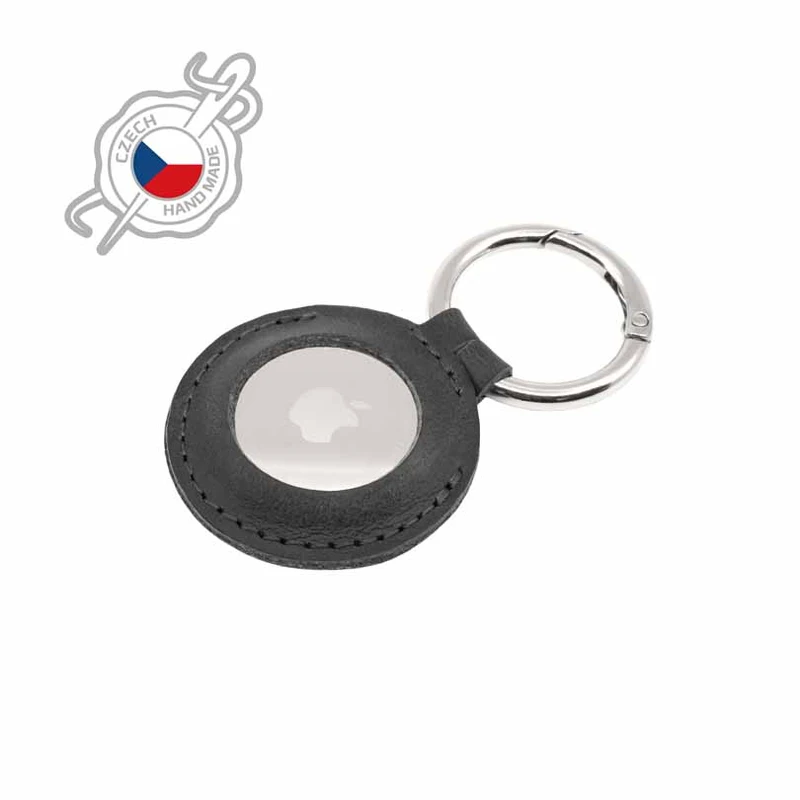 Keychain Case for AirTag, Real Leather, Black